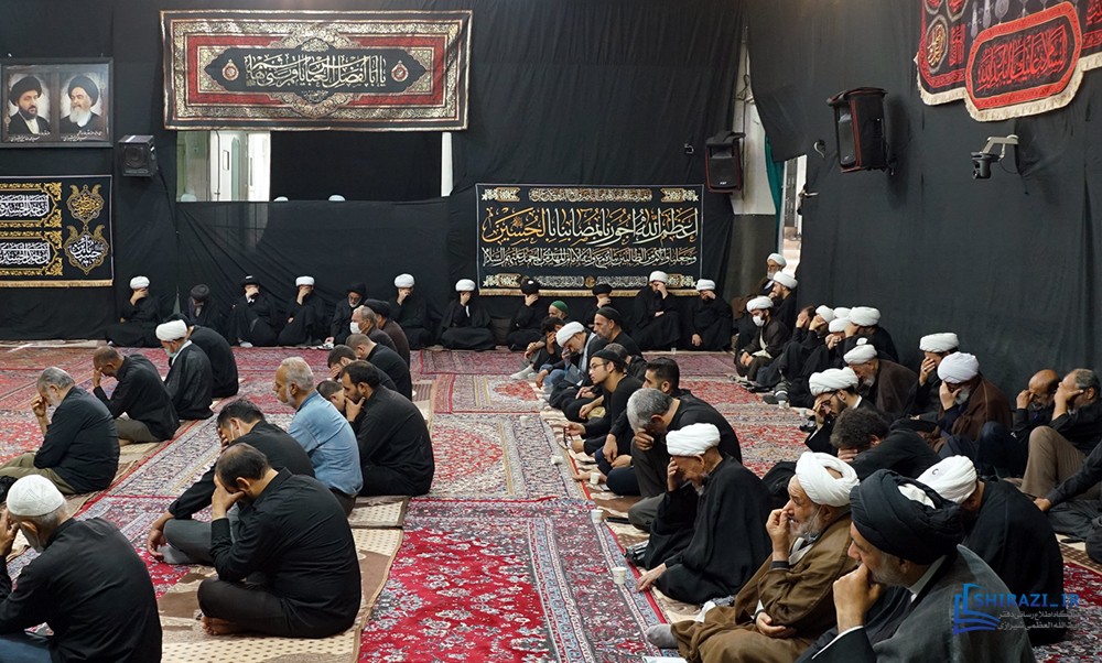 تقام المجالس الحسينية المذكورة في بيت سماحة المرجع الشيرازي دام ظله من أول محرّم الحرام وتستمر إلى الثالث عشر منه، على دفعتين، صباحاً باللغة الفارسية، وباللغة العربية عصراً.