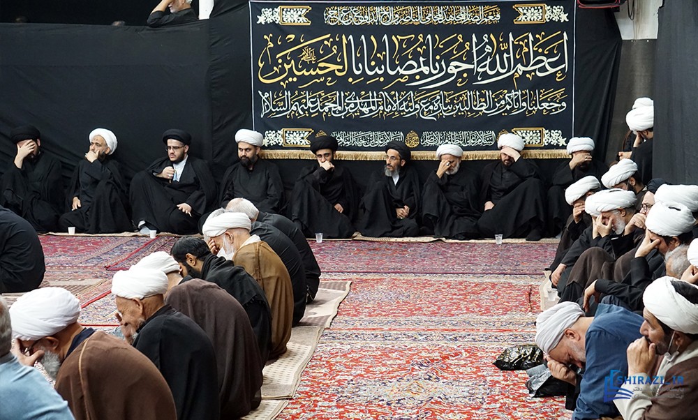 يذكر، أنّه تقام المجالس الحسينية في بيت سماحة المرجع الشيرازي دام ظله من أوّل محرّم الحرام إلى الثالث عشر منه، وعلى دفعتين، صباحاً باللغة الفارسية، وباللغة العربية عصراً.