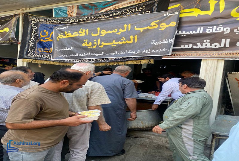 The Mawkib organized food distribution programs, offering hot meals in multiple sessions to pilgrims visiting Lady Fatimah Masumah, peace be upon her, as well as devotees of Ahlulbayt, who had come from various regions to the holy city of Qom.