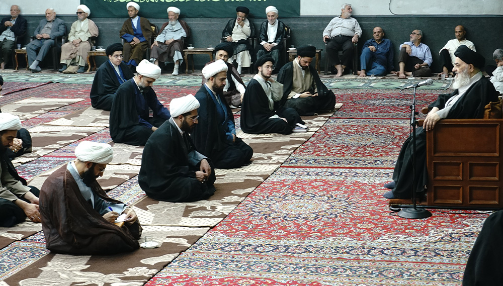 أُقيمت الجلسة العلمية اليومية للمرجع الديني سماحة آية الله العظمى السيّد صادق الحسيني الشيرازي دام ظله، مع العلماء والفضلاء وشخصيات دينية وطلبة العلوم الدينية والمؤمنين، في بيته المكرّم بمدينة قم المقدّسة، صباح اليوم الأحد 3 جمادى الأولى 1447 للهجرة (2025/10/26). وقد شهدت الجلسة حضور العشرات من العلماء والشخصيات الدينية وطلبة الحوزات العلمية.