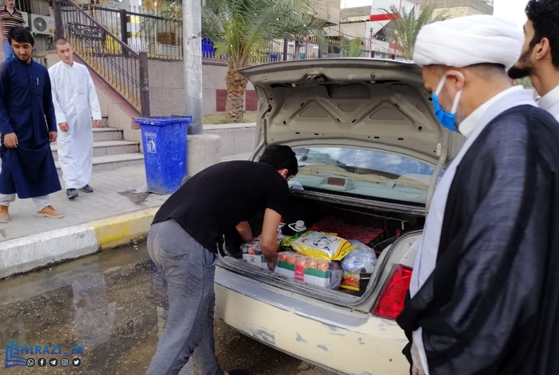 واحد تبلیغات دفتر مرجع عالیقدر آیت الله العظمی سید صادق حسینی شیرازی دام ظله در نجف اشرف در چارچوب حمایت های خود از شهروندان در روزهای مقابله با بیماری کرونا به ده ها خانواده طلاب علوم دینی بسته های مواد غذایی اهدا کرد.