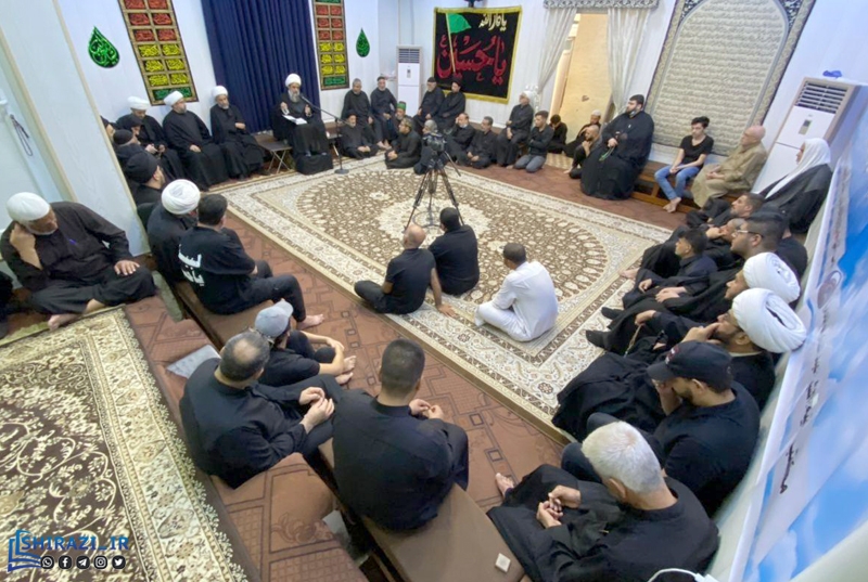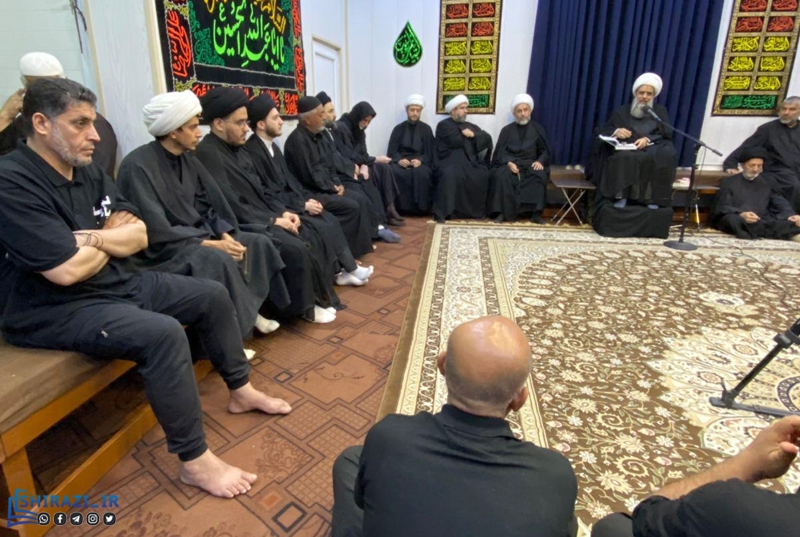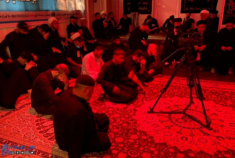 دفتر آیت الله شیخ عبدالکریم حائری، از اساتید دروس خارج فقه در کربلای معلی شاهد حضور عزاداران حسینی در مراسم عزاداری این دفتر بود.