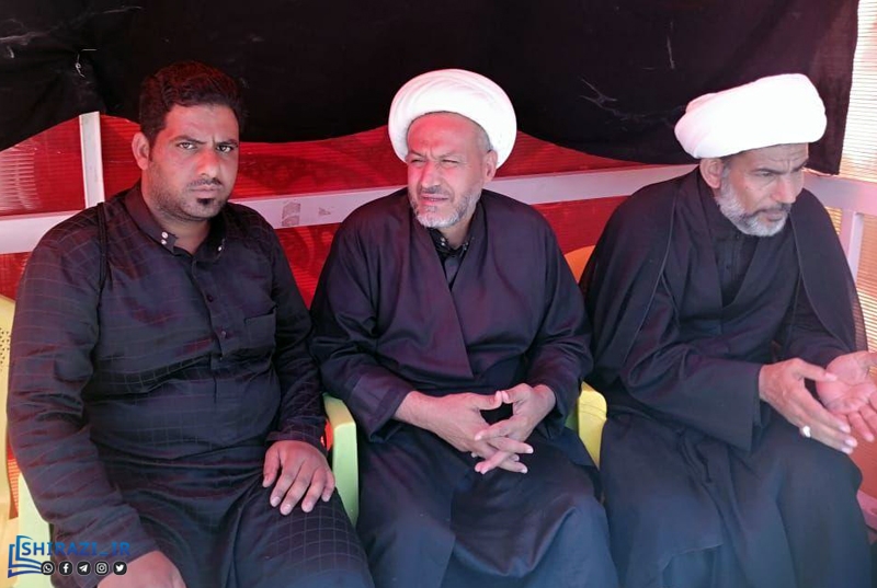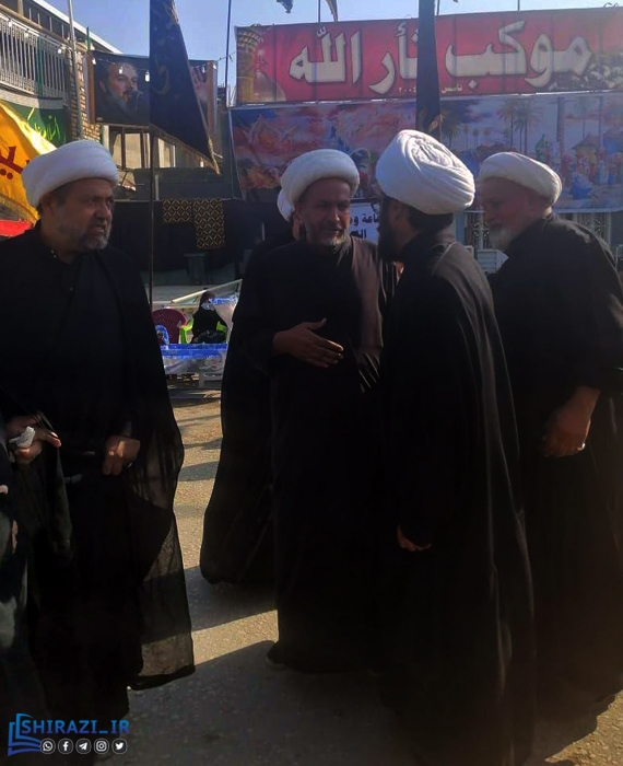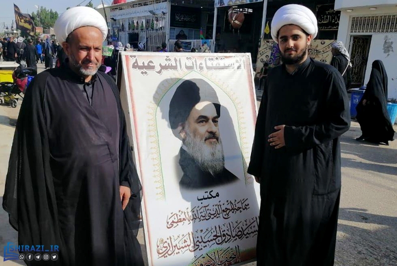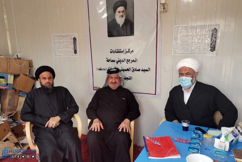 خیمه استفتائات دفتر مرجع عالیقدر آیت الله العظمی سید صادق حسینی شیرازی دام ظله در نجف اشرف که در مسیر زائران اربعین به کربلای معلی مستقر است، میزبان حجت الاسلام والمسلمین شیخ علی نجفی، فرزند مرجع عالیقدر آیت الله العظمی شیخ بشیر نجفی دام ظله بود.