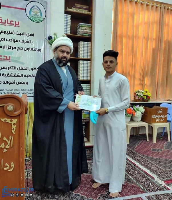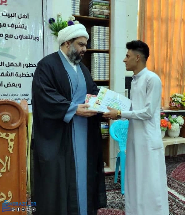 مؤسسه فرهنگی ـ خیریه اهل بیت علیهم السلام، از مراکز مرتبط با مرجعیت در شهر بصره عراق طی برگزاری مراسمی از برندگان مسابقه حفظ خطبه شقشقیه تجلیل کرد.