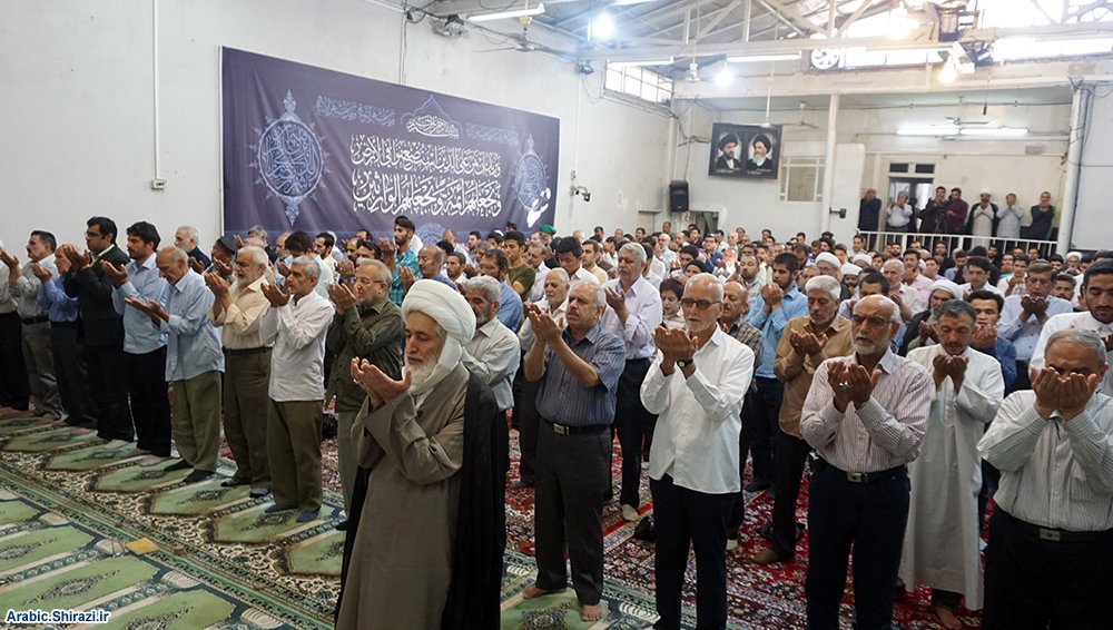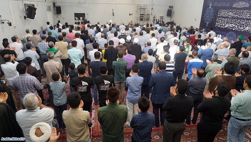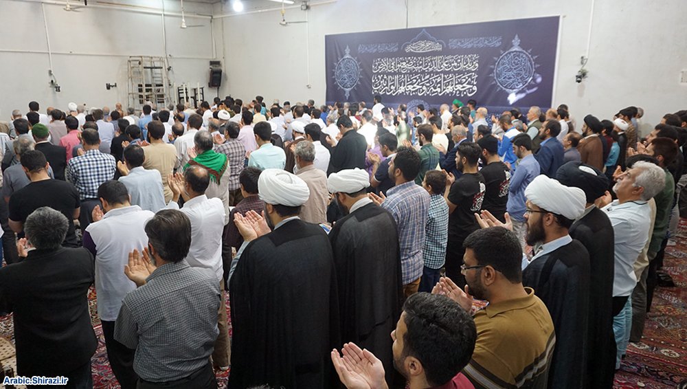 بدأت هذه المراسيم بقراءة دعاء الندبة الشريف، ثم إقامة الصلاة جماعة بإمامة آية الله الشيخ حسين الفدائي الحسيني دامت بركاته.