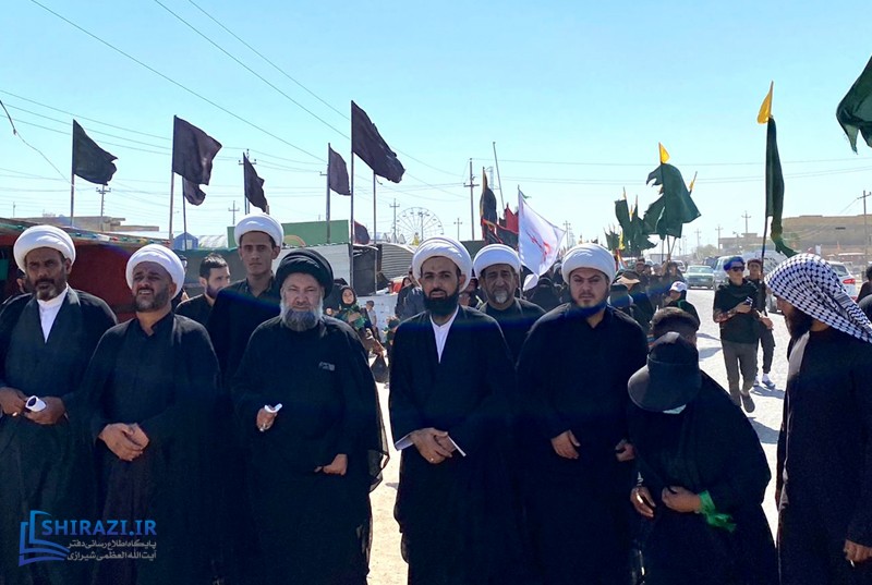 آنان سلام و دعا و برخی از توصیه های مرجع عالیقدر حضرت آیت الله العظمی سید صادق حسینی شیرازی دام ظله را به خادمان حضرت سید الشهدا علیه السلام به ویژه زائران پیاده رساندند.