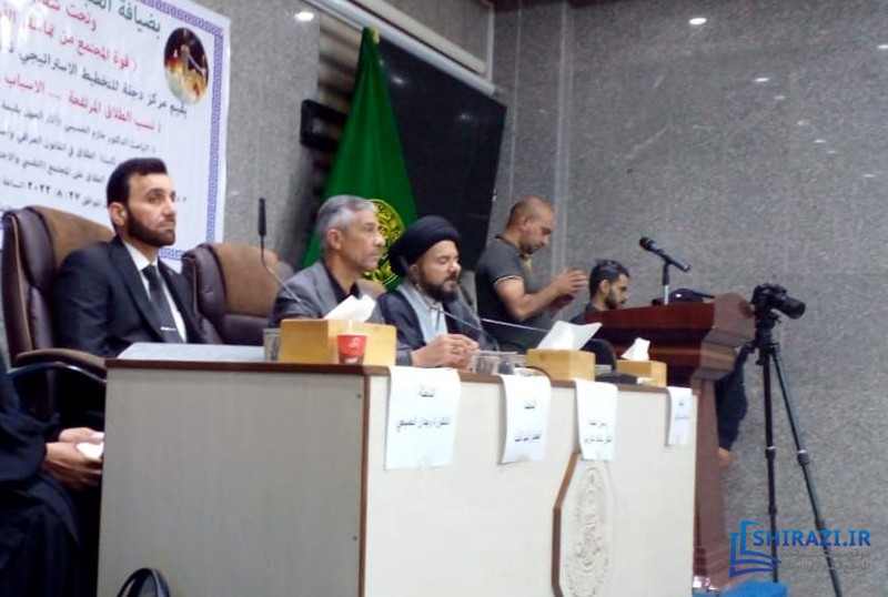 شارك ممثّل مكتب المرجع الديني سماحة آية الله العظمى السيّد صادق الحسيني الشيرازي دام ظله في مدينة النجف الأشرف، حجّة الإسلام الشيخ صلاح الحلفي في الندوة التي عقدتها العتبة العلوية المقدّسة تحت عنوان (ارتفاع حالات الطلاق).