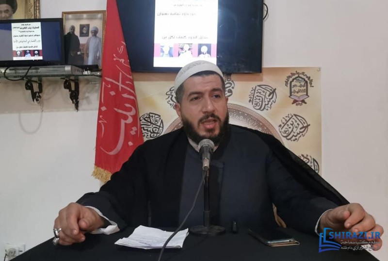 بعدها كانت كلمة العلّامة الدكتور الشيخ ابراهيم العاملي تحدّث فيها عن دور المرأة العالمة، ومولاتنا السيّدة زينب الكبرى سلام الله عليها إنموذجاً، وكذلك تعرّض بذكره لجوانب من سيرتها الشريفة.