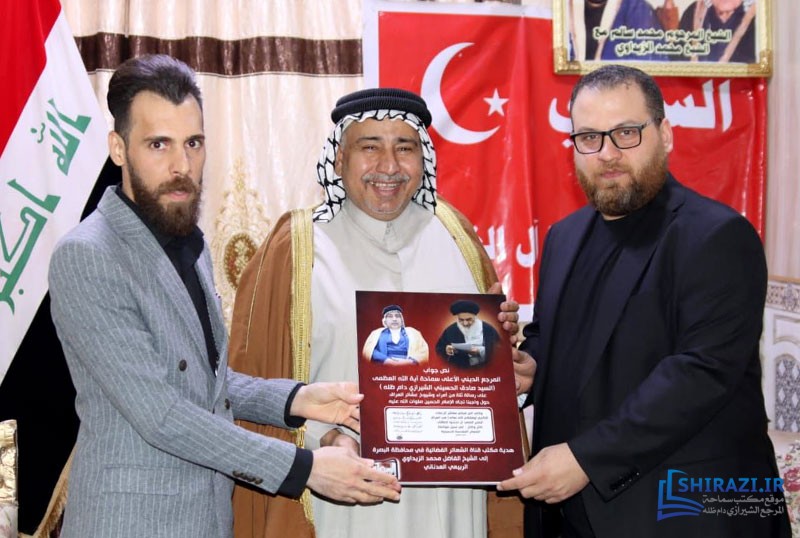 خلال الزيارة المذكورة، قدّم الوفد لوحة نص جواب المرجع الديني سماحة آية الله العظمى السيّد صادق الحسيني الشيرازي دام ظله كرسالة إلى أمراء وشيوخ عشائر العراق حول الشعائر الحسينية المقدّسة والواجب تجاه القضية الحسينية المقدّسة إلى الشيخ الزيداوي.