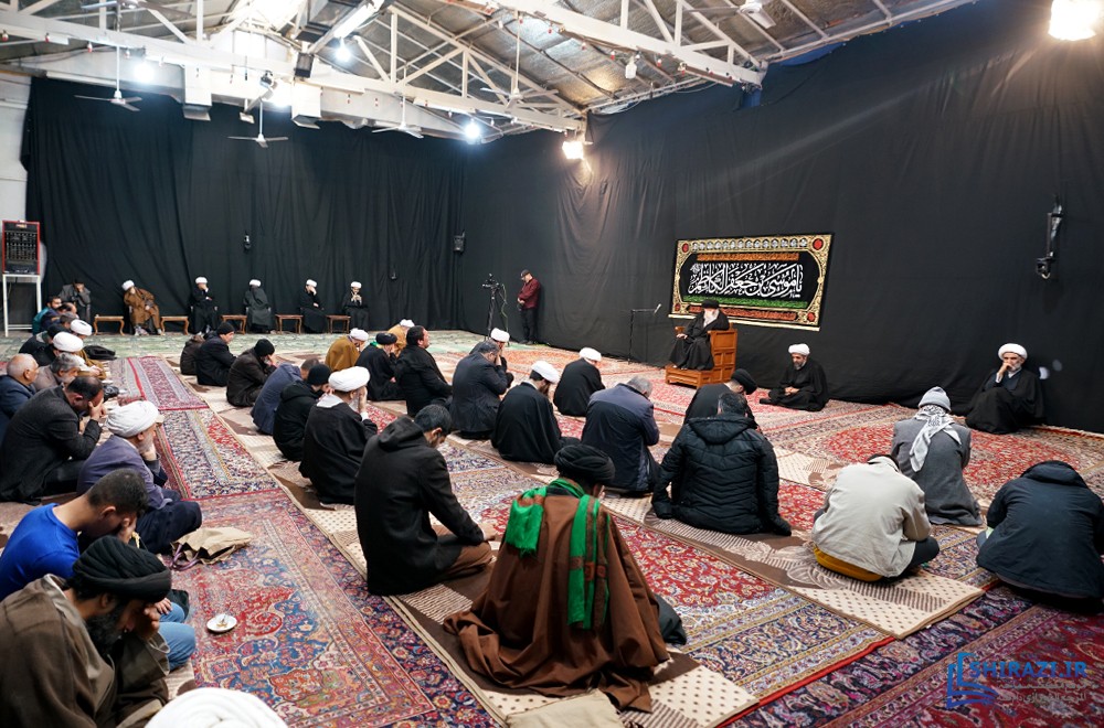 أقيم المجلس في قاعة الجلسات العلمية واللقاءات اليومية لسماحة المرجع الشيرازي دام ظله، بحضور ومشاركة العلماء والفضلاء والطلبة وأتباع أهل البيت الأطهار صلوات الله عليهم ومواليهم ومحبّيهم، واستمعوا الى حديث المجلس لفضيلة الشيخ محمّد خردمند الذي ذكر في حديثه جوانب من مناقب وفضائل أبي طالب عليه السلام، وختمه بقراءة الأبيات الشجيّة.