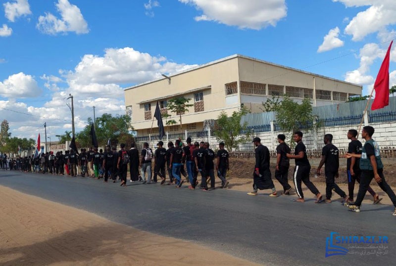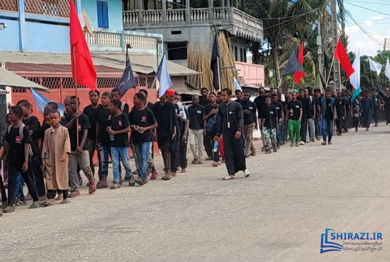 بمساعي مكتب المرجع الديني سماحة آية الله العظمى السيد صادق الحسيني الشيرازي دام ظله في مدينة ماهاجنغا بجمهورية مدغشقر، اقيمت مسيرة الأربعين الحسيني 1445 للهجرة مشيا على الاقدام في شوارع المدينة المذكورة.
