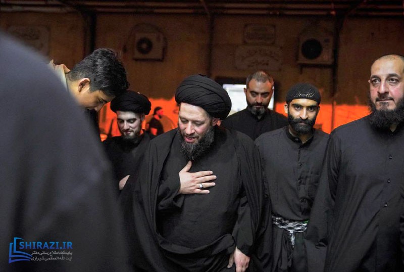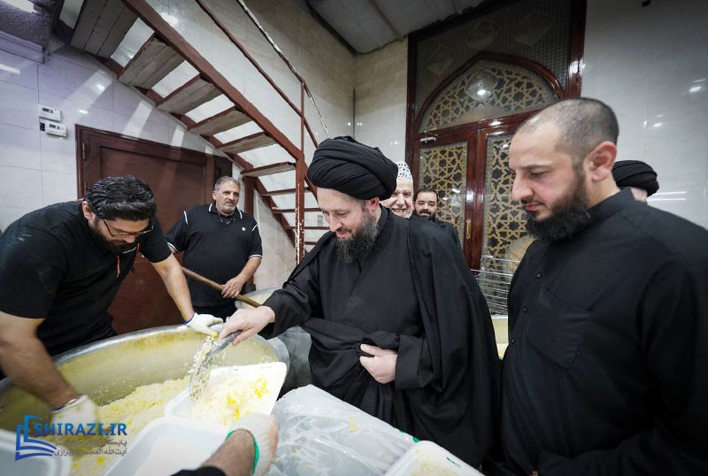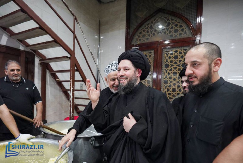 حجت الاسلام والمسلمین سید احمد شیرازی زید عزه، فرزند مرجع عالیقدر آیت الله العظمی سید صادق حسینی شیرازی دام ظله، با خدمتگزاران در آشپزخانه حسینیه حضرت رسول اعظم صلی الله علیه وآله در کشور کویت دیدار کرد.