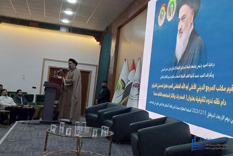 اقام مكتب المرجع الديني سماحة آية الله العظمى السيد صادق الحسيني الشيرازي دام ظله في مدينة النجف الاشرف ندوة توعوية بعنوان (المخدّرات والآثار المجتمعية الناتجة عنها).
