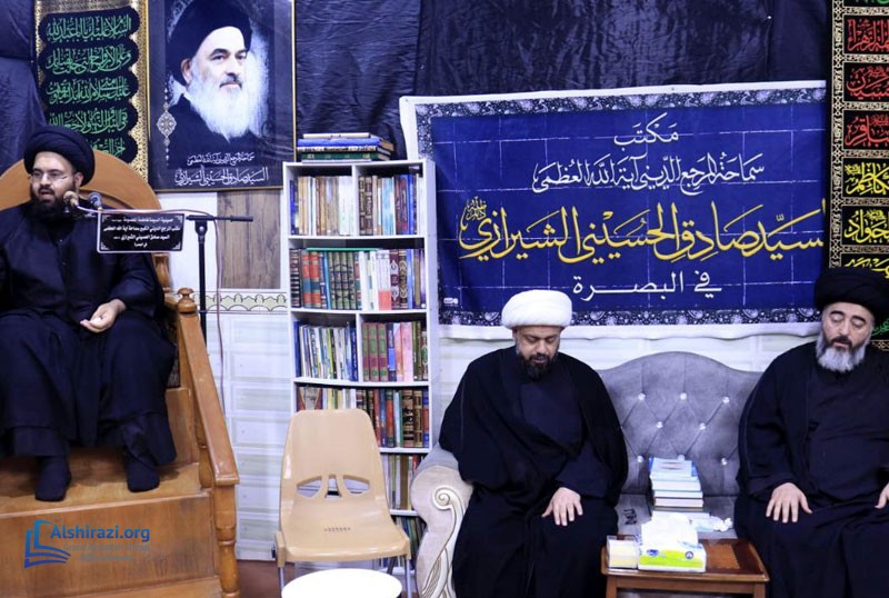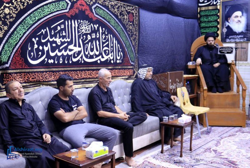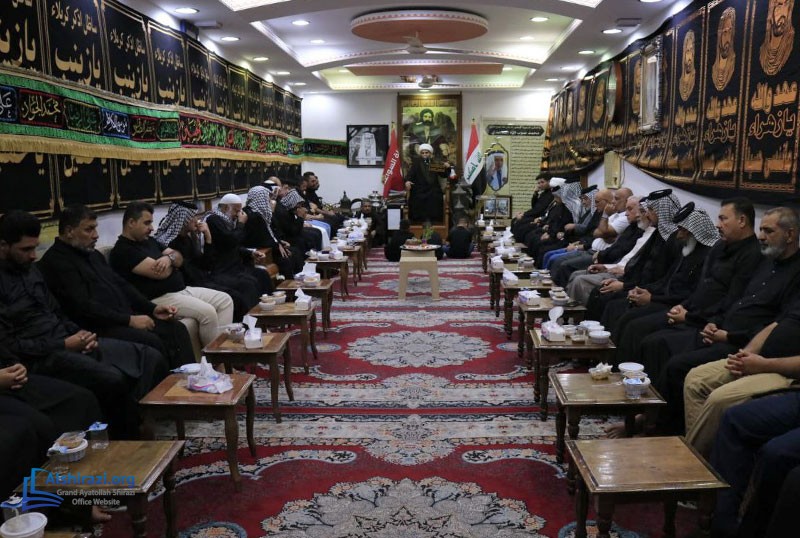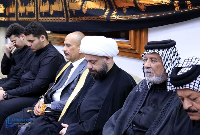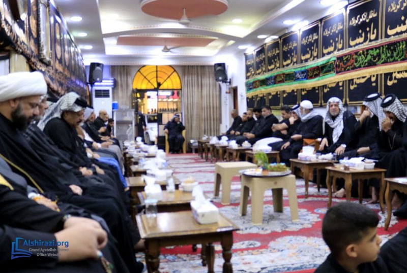 The office of Grand Ayatollah Sayyid Sadiq Hussaini Shirazi in Basra, Iraq, organized Hussaini mourning ceremonies during Muharram 1446. These events continued until the end of the first ten days of Muharram, with numerous believers and religious, academic, and cultural figures participating. Sheikh Nizar al-Hassan, the office director in Basra, also attended mourning ceremonies in various parts of Basra Province, including the Tuwaysa area, where he conveyed the greetings, prayers, and recommendations of Grand Ayatollah Shirazi to the mourners.
