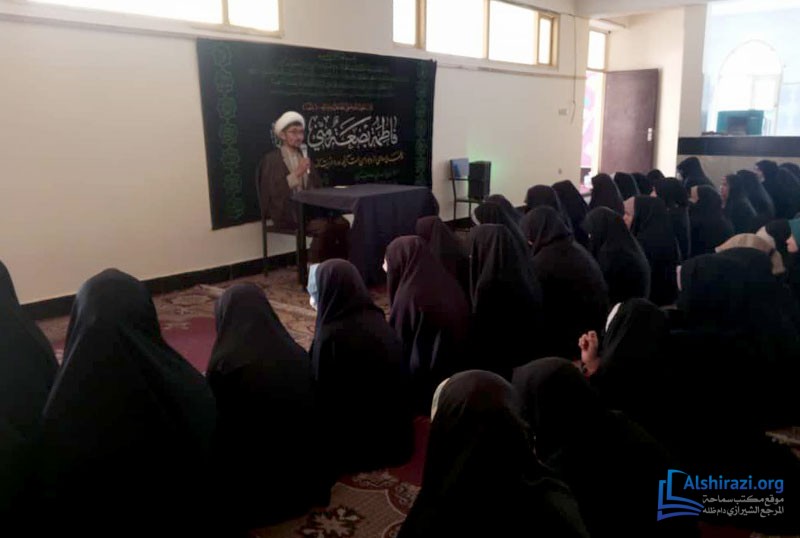 في المجلس المذكور ألقى حجة الإسلام الشيخ الرحيمي كلمة تناولت المصائب التي واجهتها السيدة الزهراء المرضية سلام الله عليها ودورها المحوري في الإسلام.