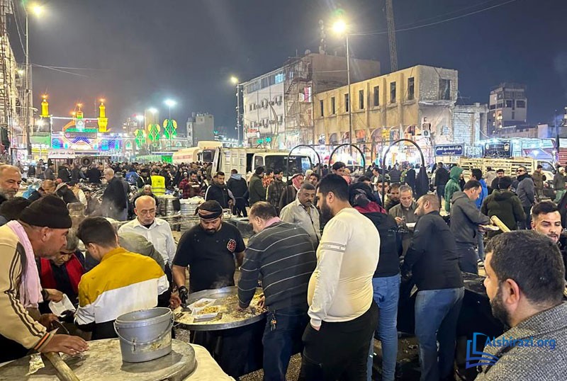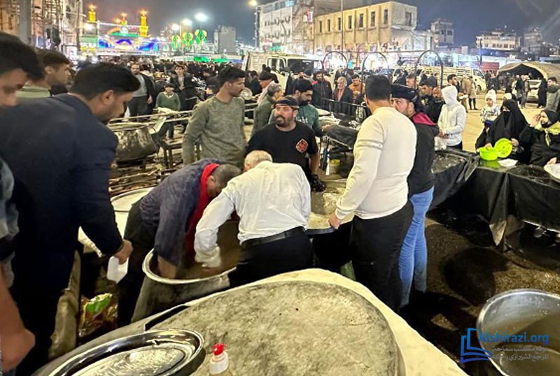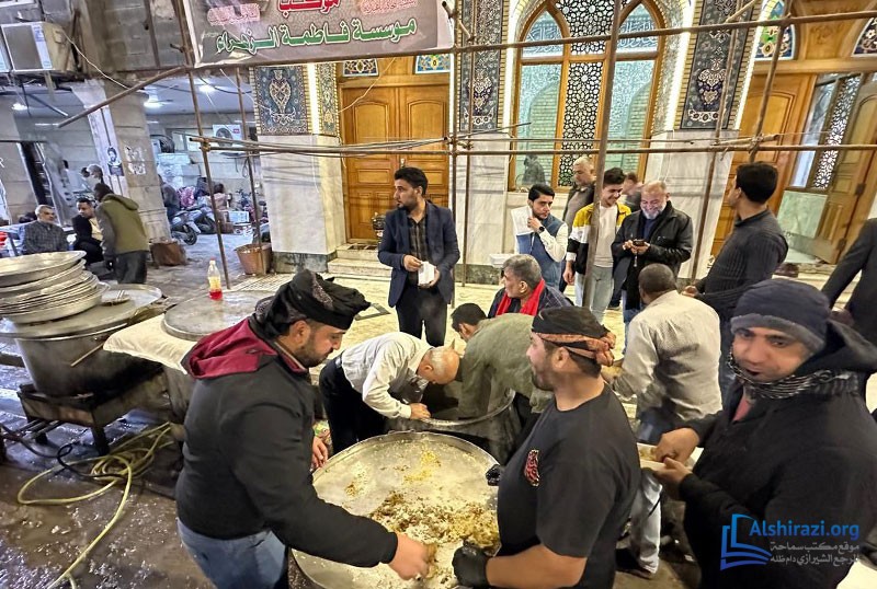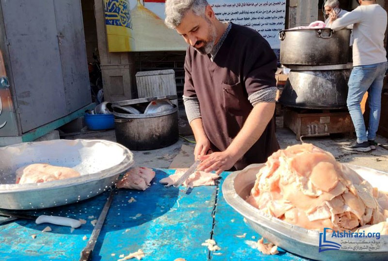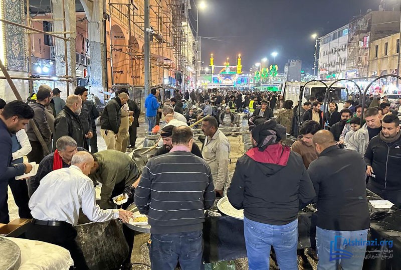 كما أقام موكب المؤسسة مأدبة كبرى احتفاءً بالمناسبة المباركة، حيث وُزّعت أطعمة ساخنة وحلويات وعصائر على زوّار الإمام الحسين عليه السلام. وبهذا الصدد صرّح حجة الإسلام الشيخ علي امجاهد، مسؤول المؤسسة، بقوله: