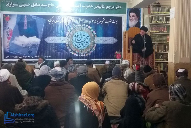 محفل جشن عید مبعث پیامبر عظیم الشأن اسلام صلی الله علیه وآله در دفتر مرجع عالیقدر آیت الله العظمی سید صادق حسینی شیرازی دام ظله در شهر کابل کشور افغانستان برگزار گردید.