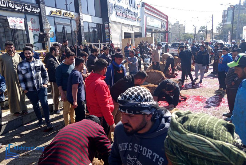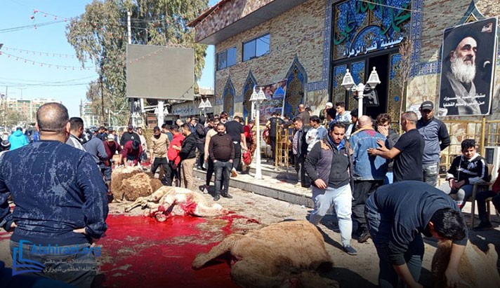به مناسبت میلاد خجسته حضرت ولی عصر عجل الله تعالی فرجه الشریف حسینیه قصر الزهراء سلام الله علیها، از مراکز مرتبط با مرجعیت در شهر مقدس کاظمین، اقدام به نحر بیش از ۵۰ شتر در این شهر و برخی شهرهای دیگر کشور عراق کرد.