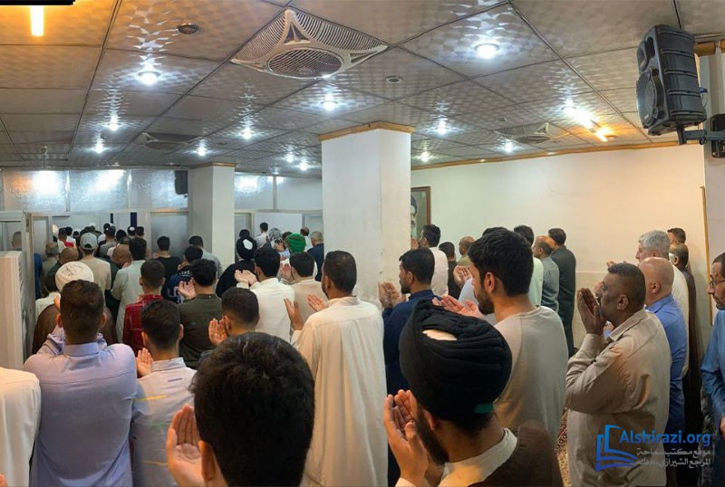 اُقيمت الصلاة بحضور عشرات المؤمنين والشخصيات الدينية والثقافية، بإمامة حجّة الإسلام والمسلمين السيّد مهدي الشيرازي.