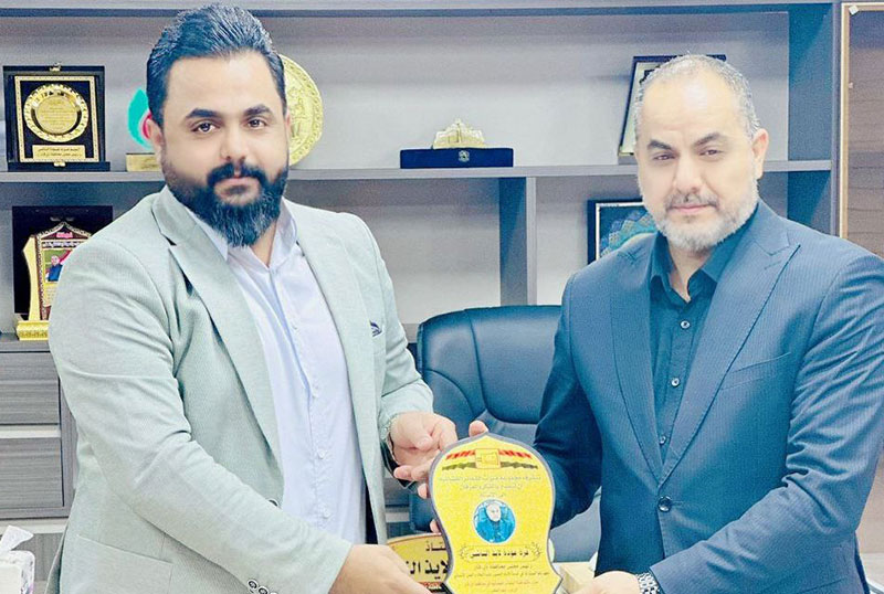 في سياق تكريم الجهود في خدمة النهج الحسيني والثقافة المحمدية، قام السيّد أمجد الصغير، مدير مكتب مجموعة الشعائر الإعلامية في محافظة ذي قار، بزيارة مكتب رئيس مجلس المحافظة، السيّد عزة عودة الناشئ، حيث قدّم له درع الوفاء للإمام الحسين عليه السلام، تكريماً لمساعيه البارزة في ميادين الخدمة الحسينية والمبادرات الإنسانية.