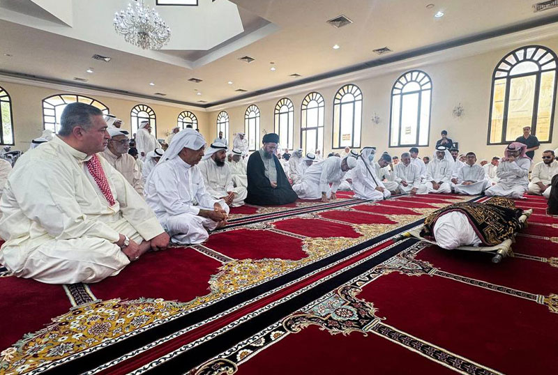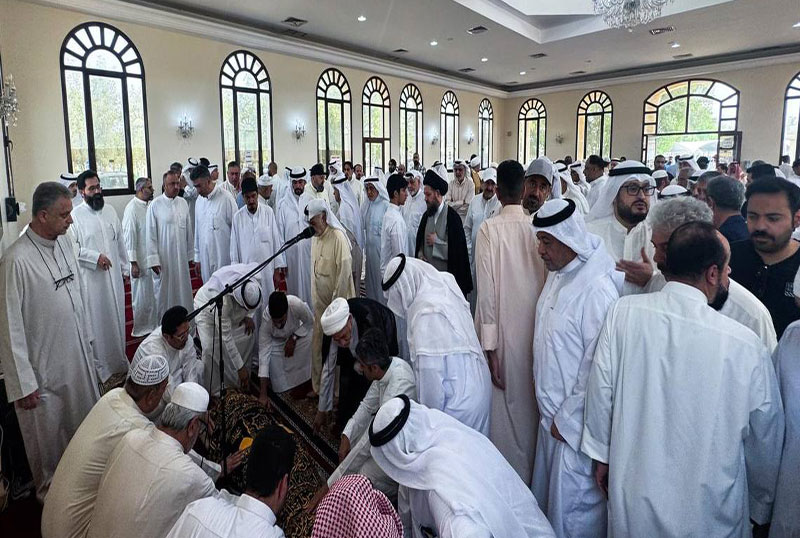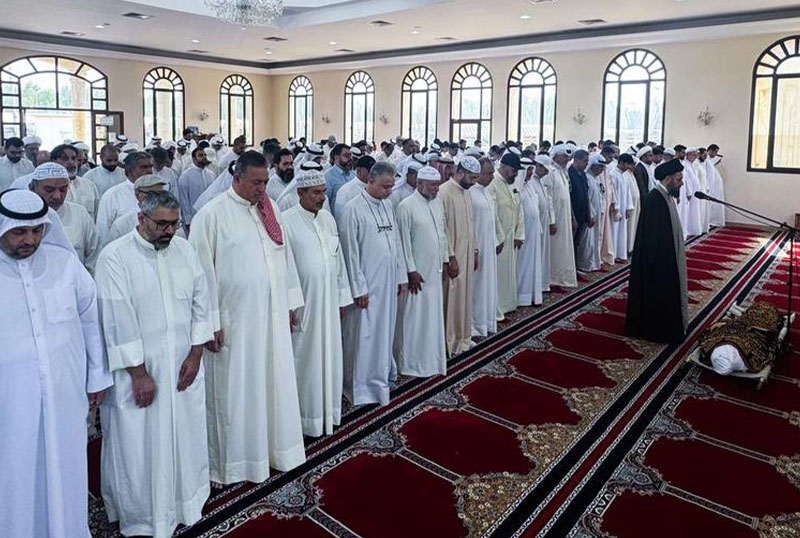 حجت الاسلام والمسلمین سید احمد شیرازی زیدعزه، فرزند مرجع عالیقدر آیت الله العظمی سید صادق حسینی شیرازی دام ظله، بر پیکر مرحوم حاج جاسم السقای از شخصیت های اجتماعی شیعیان کویت نماز میت اقامه کرد.