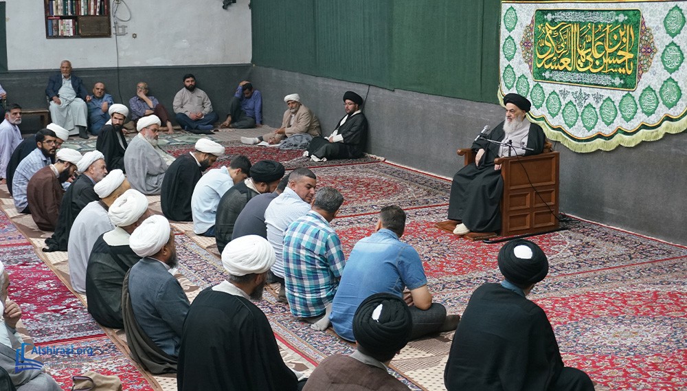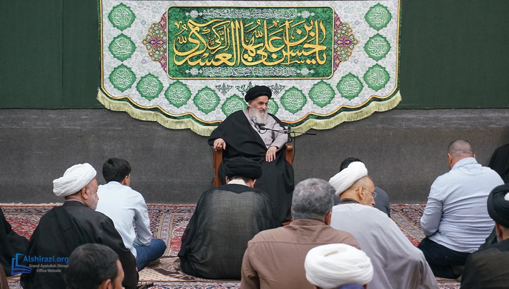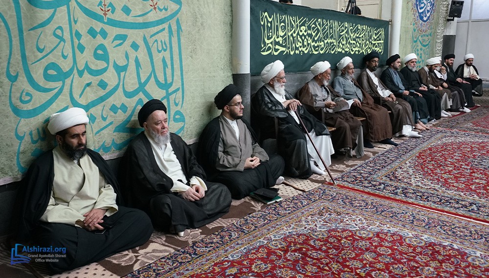 On Sunday, 5 Rabi Althani 1447 AH, another scholarly gathering of Grand Ayatollah Sayyid Sadiq Husayni Shirazi was held at his residence in the holy city of Qom, attended by dozens of scholars, religious figures, and seminary students.