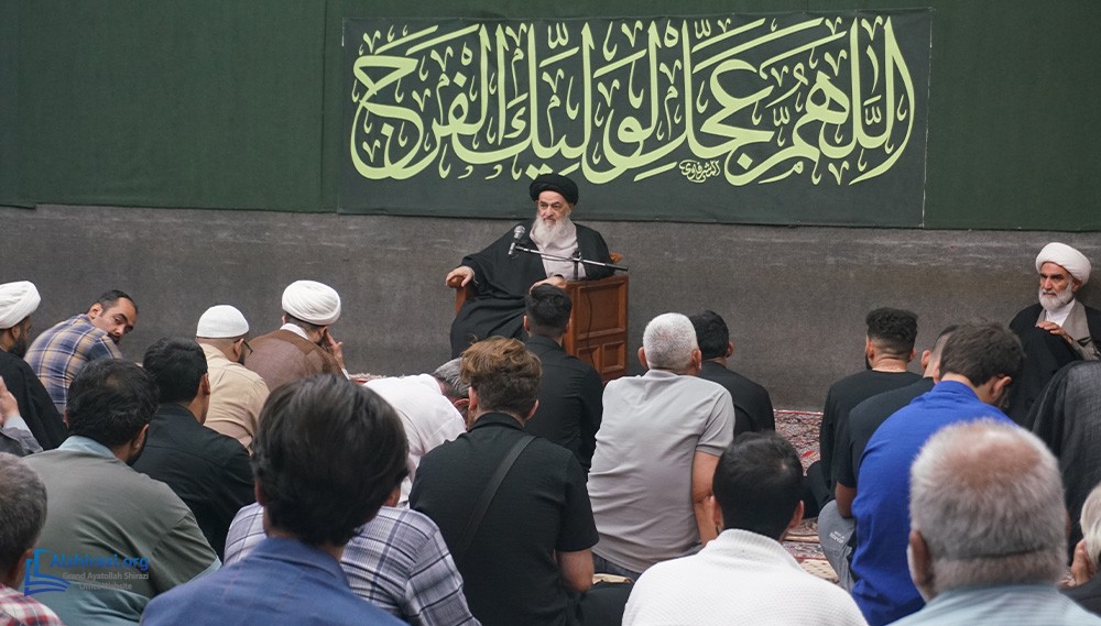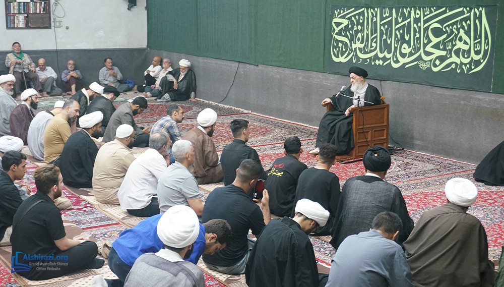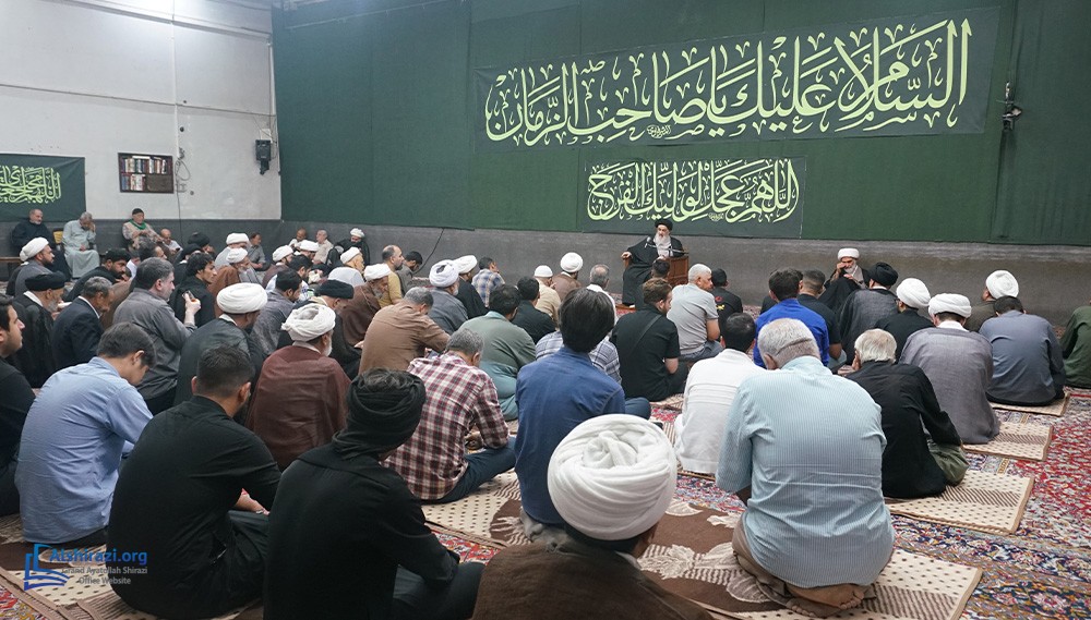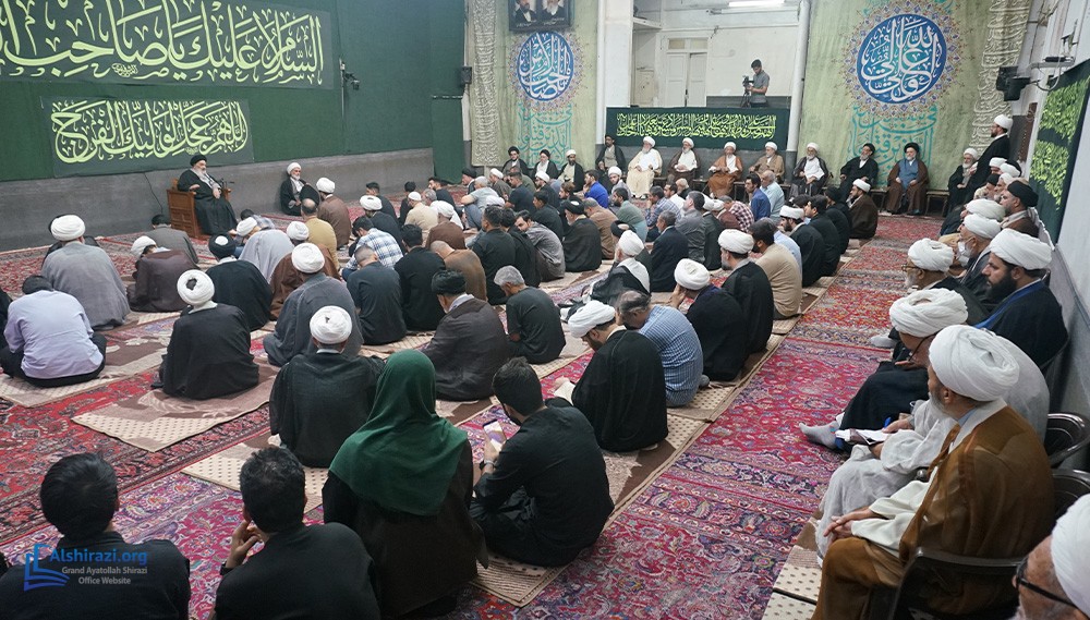On Tuesday, 7 Rabi Althani 1447 AH (30th of September 2025), another scholarly session of Grand Ayatollah Sayyid Sadiq Husayni Shirazi may Allah prolong his life was held with the participation of dozens of scholars, religious figures, and seminary students at his residence in the holy city of Qom.