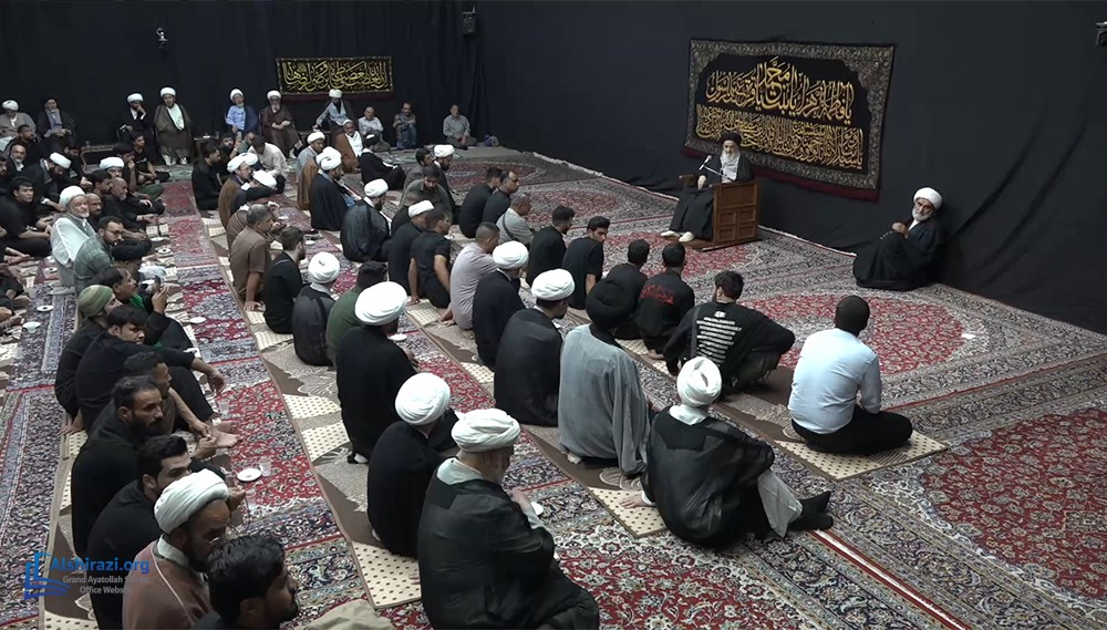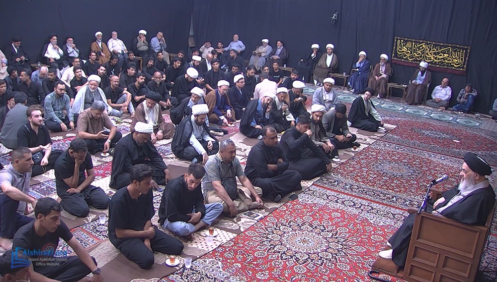 On Wednesday, 8 Rabi al-Thani 1447 AH (1 October, 2025), another scientific session of the esteemed Grand Ayatollah Sayyid Sadiq Husayni Shirazi, may Allah prolong his life, was held with the participation of dozens of scholars, religious figures, and seminary students at his residence in the holy city of Qom.