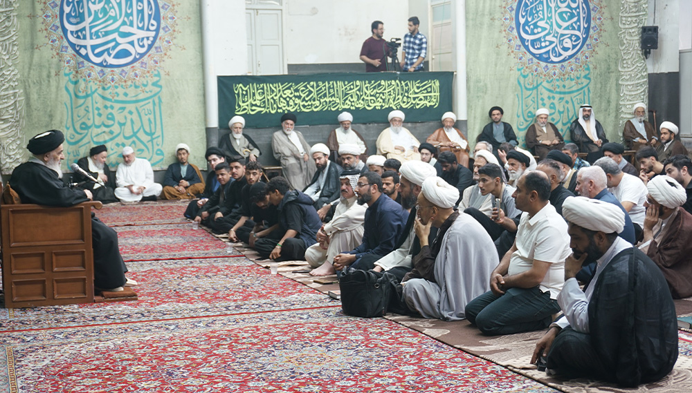 أُقيمت الجلسة العلمية اليومية للمرجع الديني سماحة آية الله العظمى السيّد صادق الحسيني الشيرازي دام ظله، مع العلماء والفضلاء وشخصيات دينية وطلبة العلوم الدينية والمؤمنين، في بيته المكرّم بمدينة قم المقدّسة، صباح اليوم الأحد 12 ربيع الثاني 1447 للهجرة (2025/10/5م). وقد شهدت الجلسة حضور العشرات من العلماء والشخصيات الدينية وطلبة الحوزات العلمية.