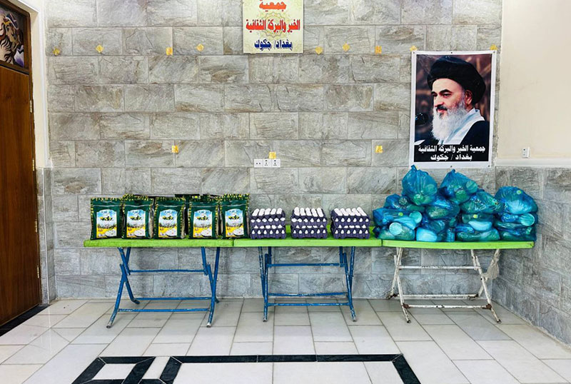 قامت جمعيّة الخير والبركة الثقافيّة في منطقة الجكوك بالعاصمة العراقية بغداد، التابعة للمرجعيّة، بتوزيع سِلال غذائيّة على العوائل المتعفّفة، وذلك استمراراً في نشاطاتها الإنسانيّة والإغاثيّة.