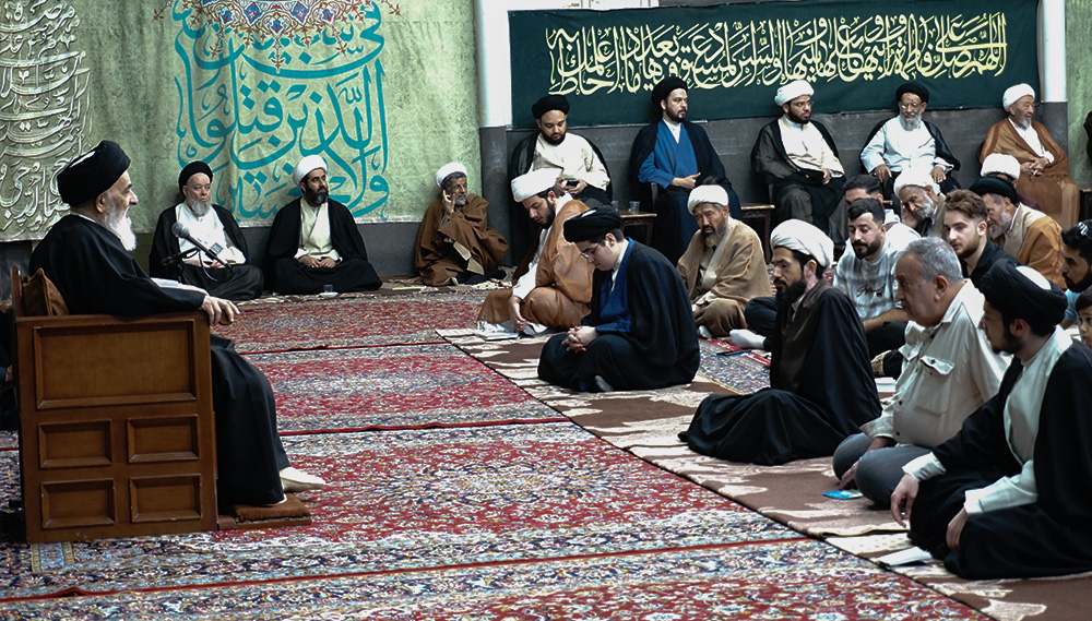 أُقيمت الجلسة العلمية اليومية للمرجع الديني سماحة آية الله العظمى السيّد صادق الحسيني الشيرازي دام ظله، مع العلماء والفضلاء وشخصيات دينية وطلبة العلوم الدينية والمؤمنين، في بيته المكرّم بمدينة قم المقدّسة، صباح اليوم الخميس 16 ربيع الثاني 1447 للهجرة (2025/10/9م). وقد شهدت الجلسة حضور العشرات من العلماء والشخصيات الدينية وطلبة الحوزات العلمية.