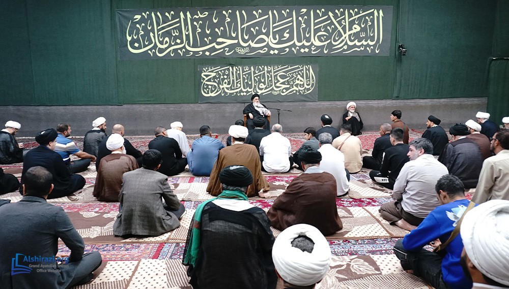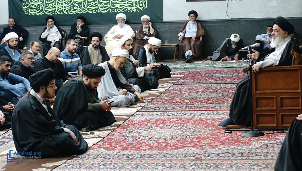 On Sunday, 26 Rabi Althani 1447 A.H. (October 19, 2025), another scholarly session of the esteemed religious authority, Grand Ayatollah Sayyid Sadiq Husayni Shirazi, was held at his residence in the holy city of Qom, attended by dozens of scholars, religious figures, and seminary students.
