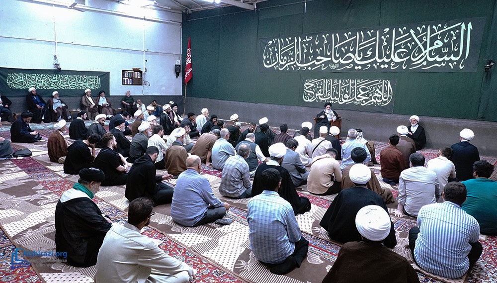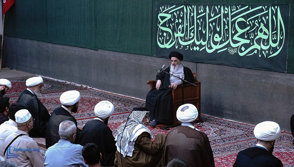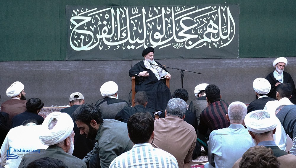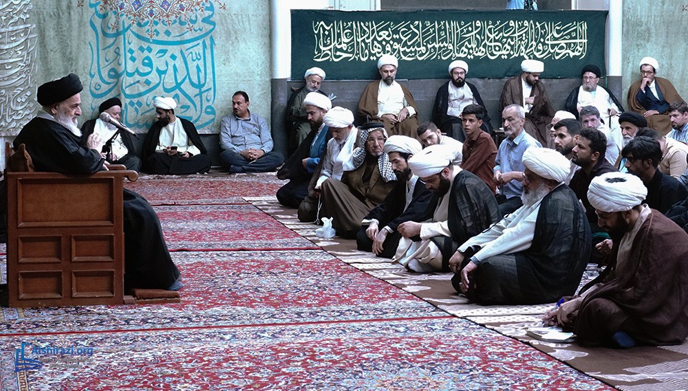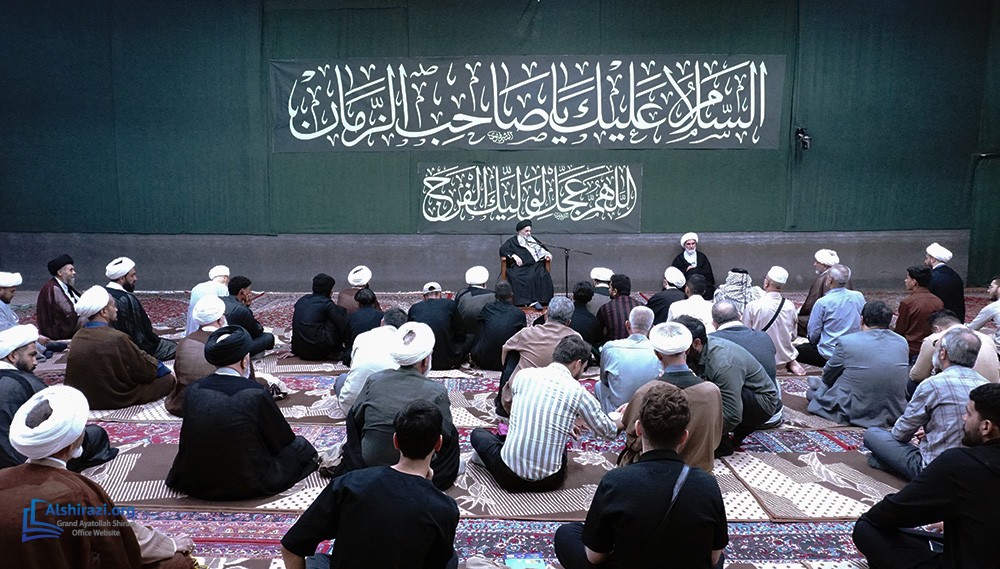 On Tuesday, 28 Rabi Althani 1447 AH (October 21, 2025), another session from the daily scholarly gatherings of the eminent religious authority, Grand Ayatollah Sayyid Sadiq Husayni Shirazi, may Allah prolong his life, was held with the attendance of dozens of scholars, religious figures, and seminary students at his residence in the holy city of Qom.