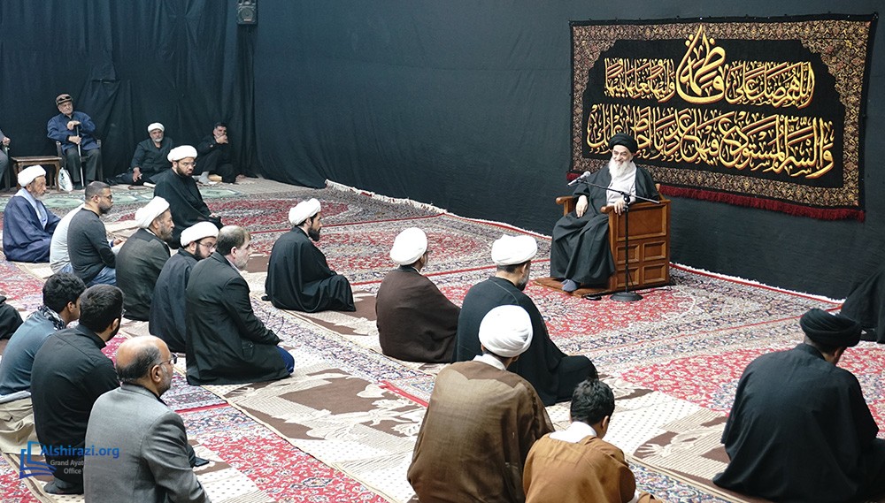 On Friday, the 15th of Jumada I, 1447 AH (November 7, 2025), another scholarly session of the Religious Authority, Grand Ayatollah Sayyid Sadiq Husseini Shirazi, may Allah prolong his life, was held at his residence in the Holy City of Qom. The gathering was attended by dozens of scholars, religious figures, and seminary students.