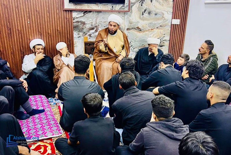 Continuing his trip, Sheikh Alhalfi visited Hillah and the Abi Gharq region, where he met with Sheikh Ali Alfatimi and members of the “Sabi Zaynab (P.B.U.H.)” committee. During the meeting, he appreciated the committee’s continuous efforts in serving the Ahlul Bayt (P.B.U.T.) and emphasized the importance of adhering to Husseini rituals.