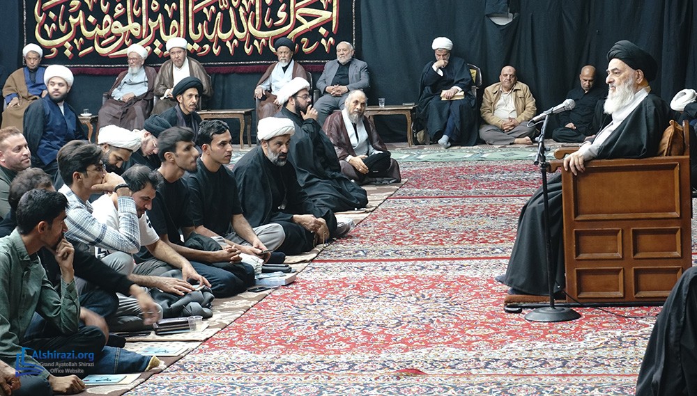 On Monday, the 18th of Jumada Al-Awwal, 1447 AH (corresponding to November 10, 2025), another scholarly meeting of the Religious Authority, Grand Ayatollah Sayyid Sadiq Husseini Shirazi, may Allah prolong his life, was held at his residence in the Holy City of Qom, with the participation of dozens of scholars, religious figures, and seminary students.