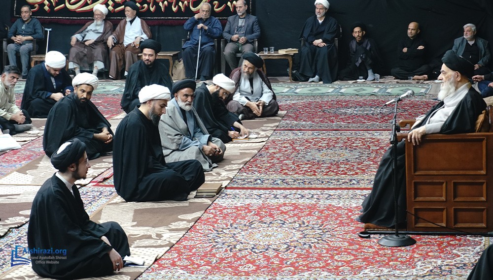 On Tuesday, 19 Jumada Al-Awwal 1447 AH (November 11, 2025), another scholarly session of the esteemed Religious Authority, Grand Ayatollah Sayyid Sadiq Husseini Shirazi, may Allah prolong his life, was held with the presence of dozens of scholars, religious figures, and seminary students at his residence in the Holy City of Qom.