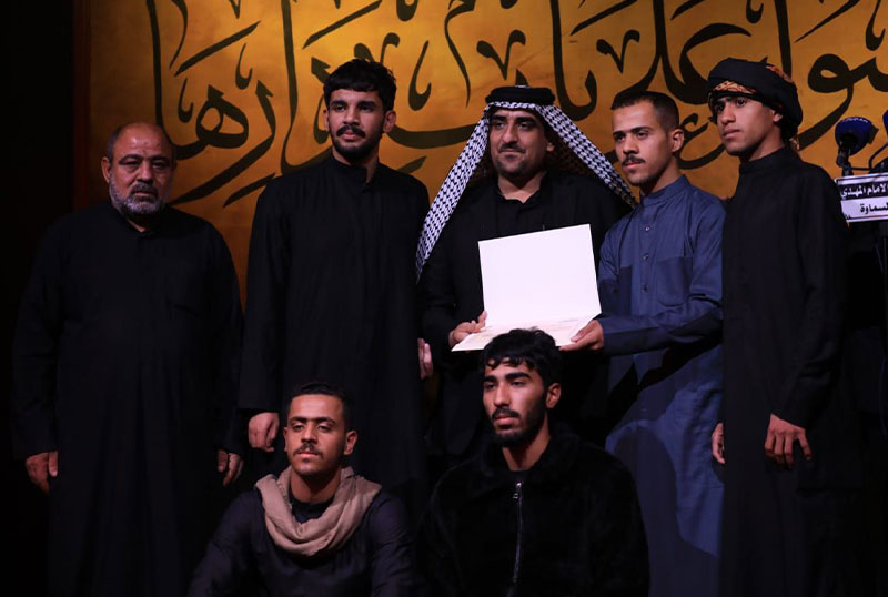 به همت و نظارت واحد شعائر حسينی و واحد شعر و هنر در مرکز مطالعات راهبردی النجف الاشرف، از مراکز مرتبط با مرجعیت در شهر مقدس نجف، و همزمان با سالروز شهادت حضرت فاطمه زهرا سلام الله علیها، مراسم عزاداری هیئت عزای مرکزی شهر سماوه عراق برگزار شد.
