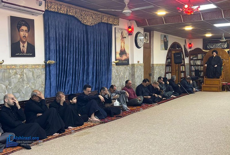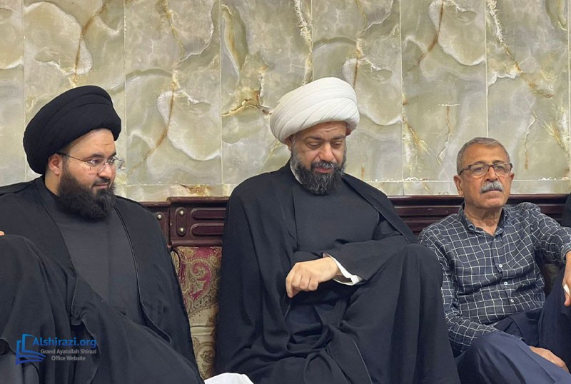 Sheikh Nizar Hassan, Director of the Office of Grand Ayatollah Sayyid Sadiq Husseini Shirazi, may Allah prolong his life, in the city of Basra, attended the mourning ceremony held at the Sadat Makasiss Husseiniyah.