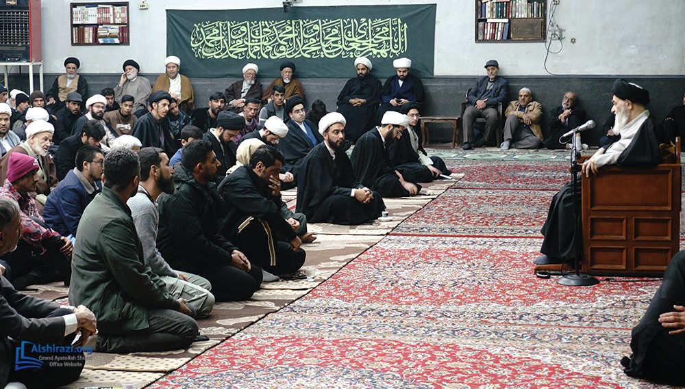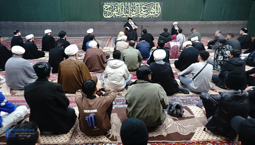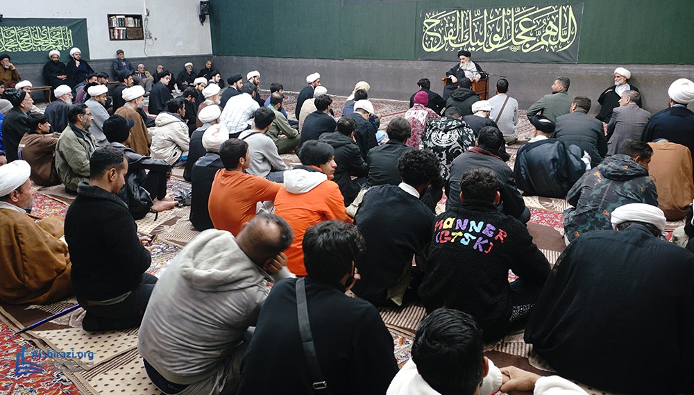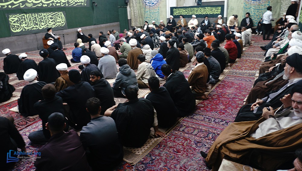 On Thursday, 7 Jumada Al-Thani 1447 AH (November 29, 2025), another scholarly session of the esteemed Religious Authority, Grand Ayatollah Sayyid Sadiq Husseini Shirazi, may Allah prolong his life, was held at his residence in the Holy City of Qom, with the participation of dozens of scholars, religious figures, and seminary students.