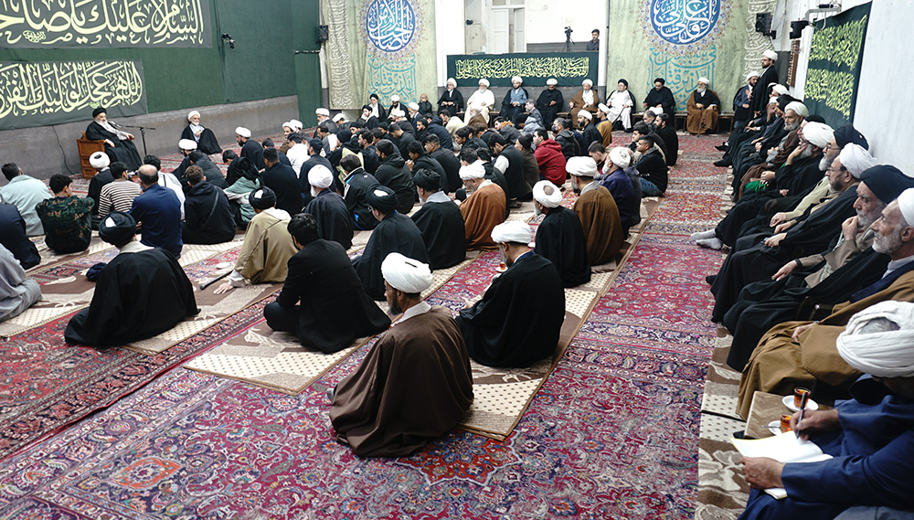 أُقيمت الجلسة العلمية اليومية للمرجع الديني سماحة آية الله العظمى السيّد صادق الحسيني الشيرازي دام ظله، مع العلماء والفضلاء وشخصيات دينية وطلبة العلوم الدينية والمؤمنين، في بيته المكرّم بمدينة قم المقدّسة، صباح اليوم الأربعاء 11 جمادى الثاني 1447 للهجرة (2025/12/3). وقد شهدت الجلسة حضور العشرات من العلماء والشخصيات الدينية وطلبة الحوزات العلمية.