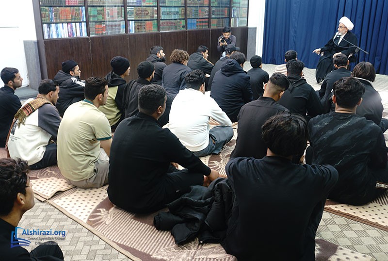 The house of the Religious Authority, Grand Ayatollah Sayyid Sadiq Husseini Shirazi, may Allah prolong his life, in the Holy City of Qom hosted the “Umm Alwujood” pilgrimage caravan from the city of Nasiriyah in Iraq on Wednesday, 11 Jumada Al-Thani 1447 AH.