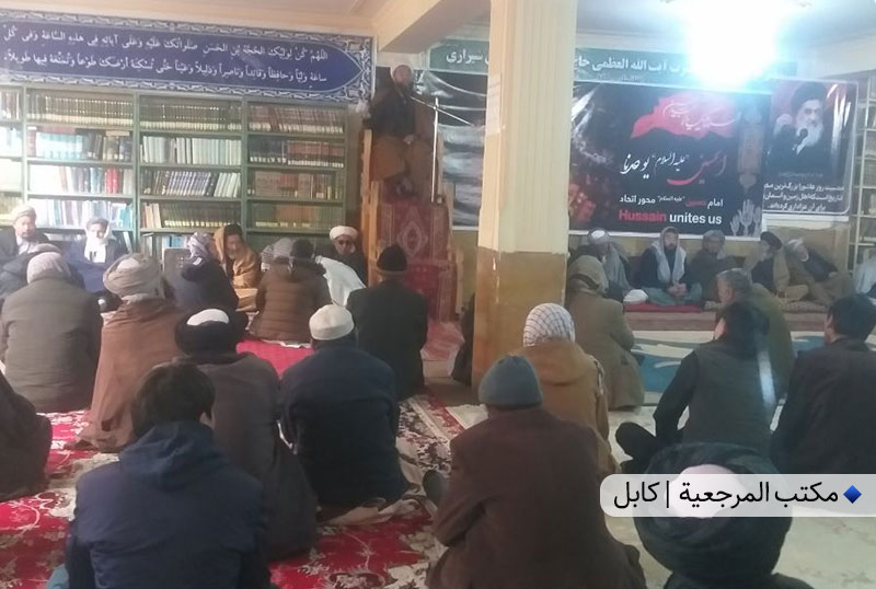 كما أُقيم مجلس آخر في مكتب المرجعية بمدينة كابل، حضره العلماء والفضلاء والخطباء والرواديد والمؤمنون. وقد تحدّث في المجلس حجّة الإسلام الأميني حول موضوع «الامتحان الإلهي لعباده»، مسلطاً الضوء على السنّة الإلهية في اختبار الإنسان.