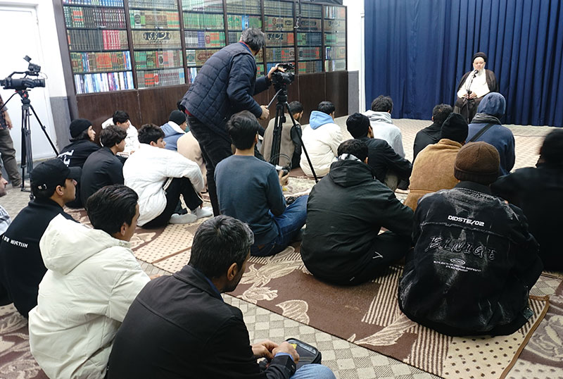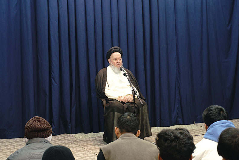 استمع أعضاء القافلة خلال زيارتهم إلى توجيهات حجّة الإسلام والمسلمين السيّد حسين الشيرازي زيد عزّه، التي ألقاها بجمعهم.
