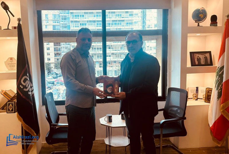 At the conclusion of the meeting, Professor Hussein Alshaer presented Dr. Fakhouri with the book “Al-Adwar Al-Nahdawiyah” by the Religious Authority, Grand Ayatollah Sayyid Sadiq Husseini Shirazi, may Allah prolong his life.