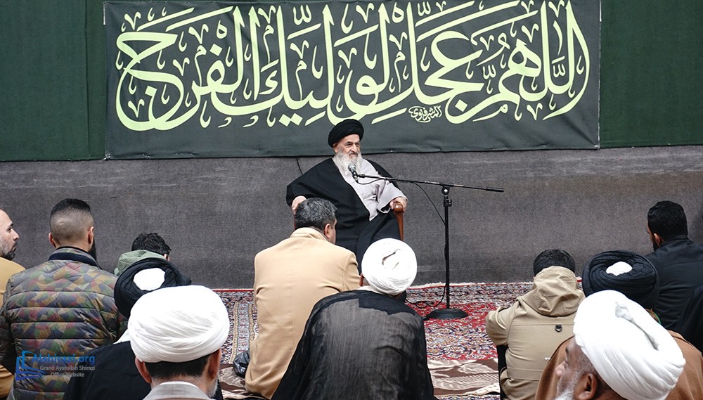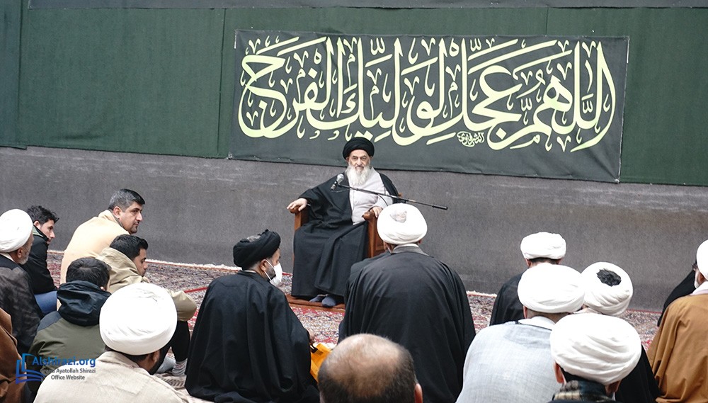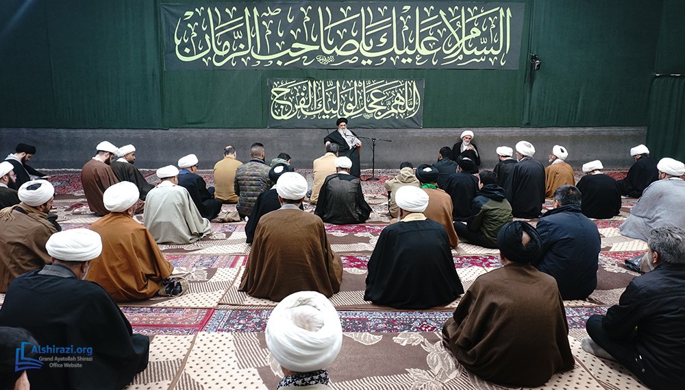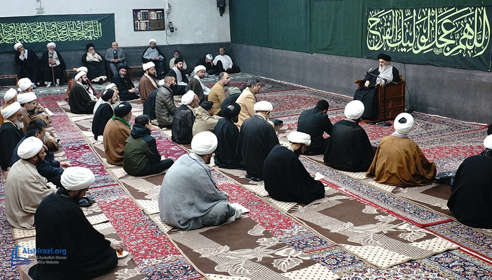 On Tuesday, 9 Rajab 1447 AH (December 30, 2025), another scholarly session of the esteemed Religious Authority, Grand Ayatollah Sayyid Sadiq Husseini Shirazi, may Allah prolong his life, was held at his residence in the Holy City of Qom, with the participation of dozens of scholars, religious figures, and seminary students.