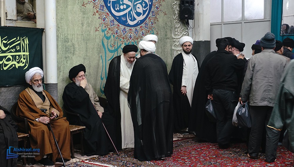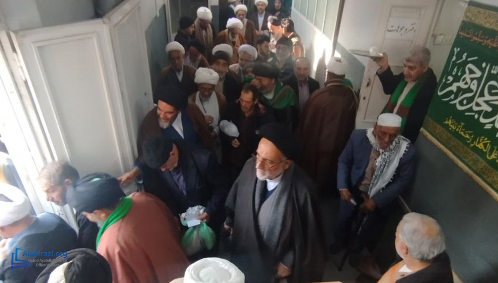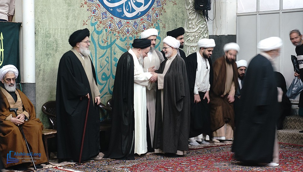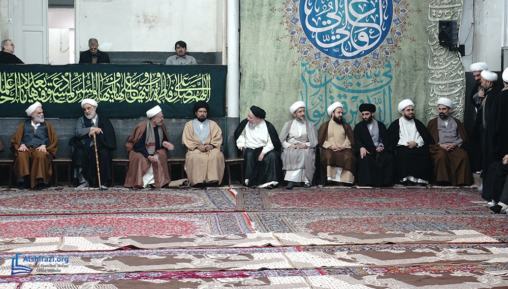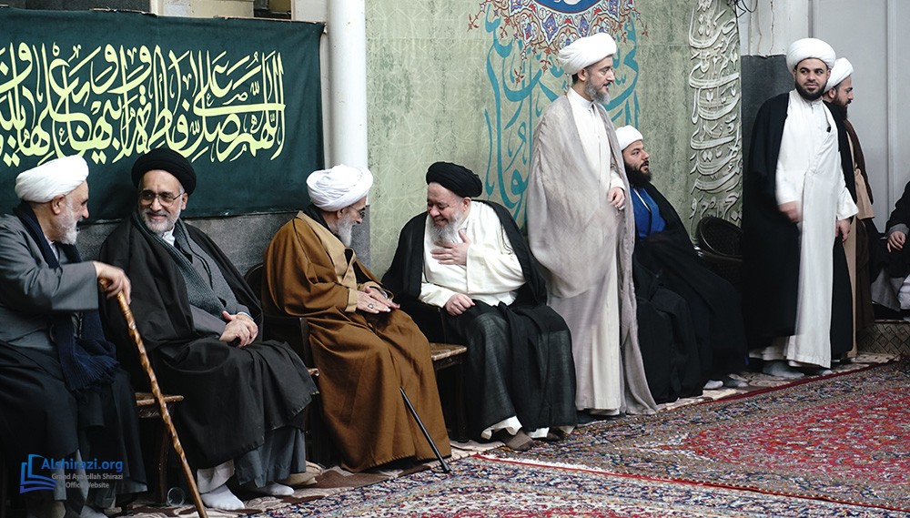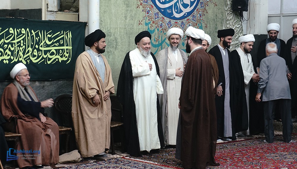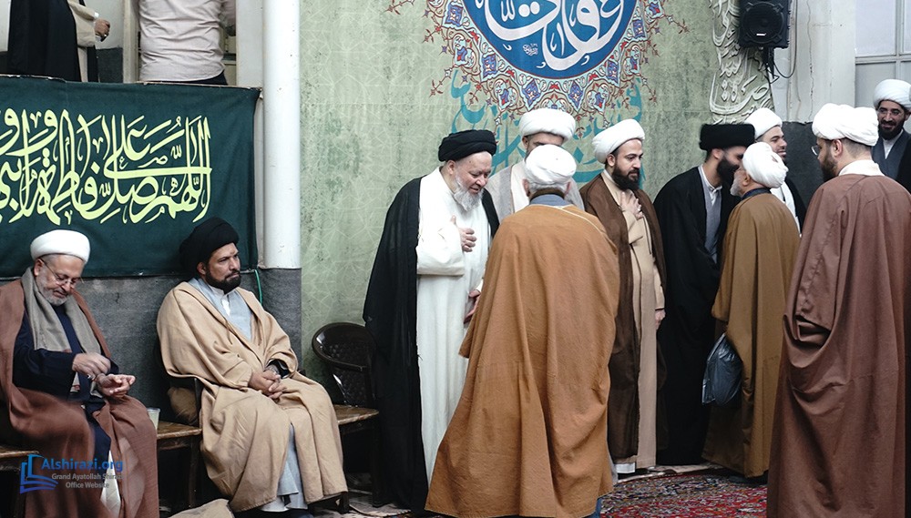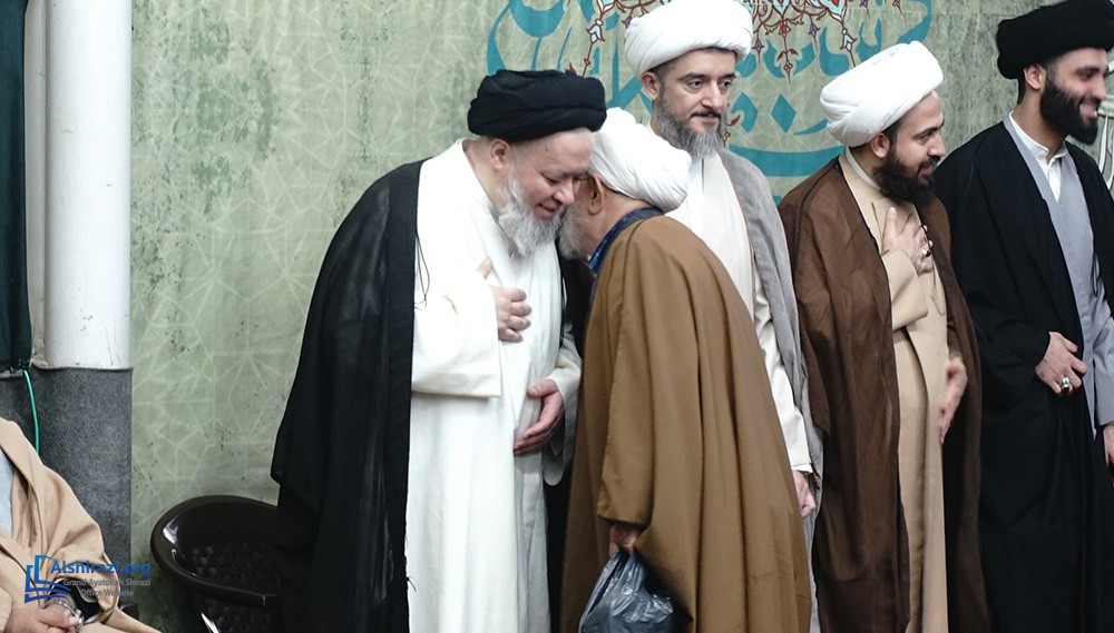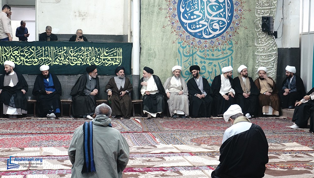 At this luminous gathering, scholars, students of knowledge, devoted believers, along with pilgrims and distinguished guests from various countries, came together at the residence of Grand Ayatollah Shirazi to celebrate the arrival of this blessed day in honor of the Commander of the Faithful, Imam Ali, peace be upon him.