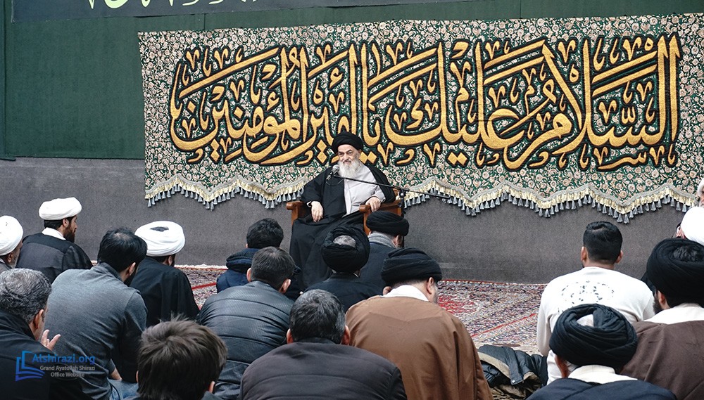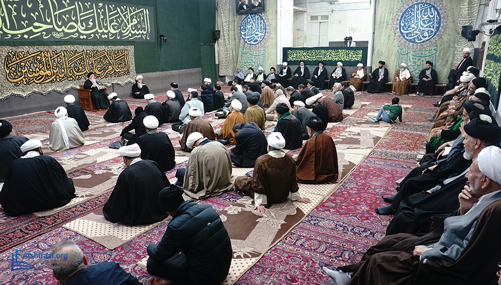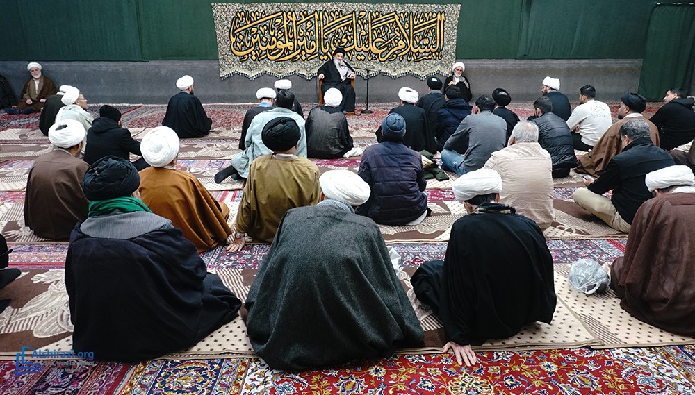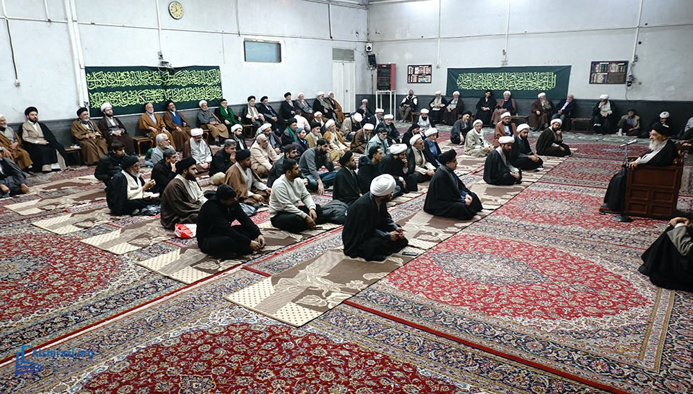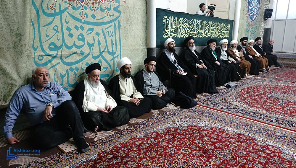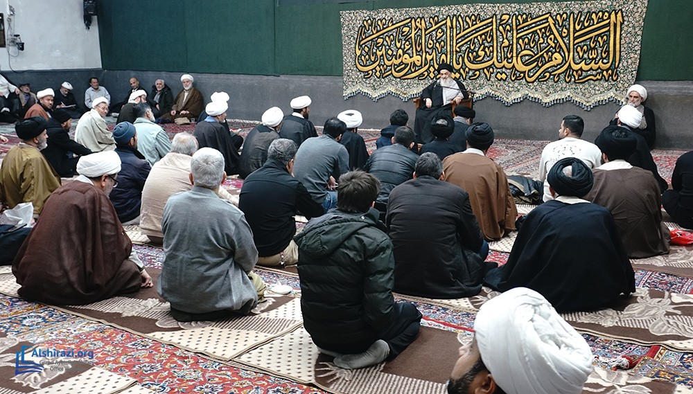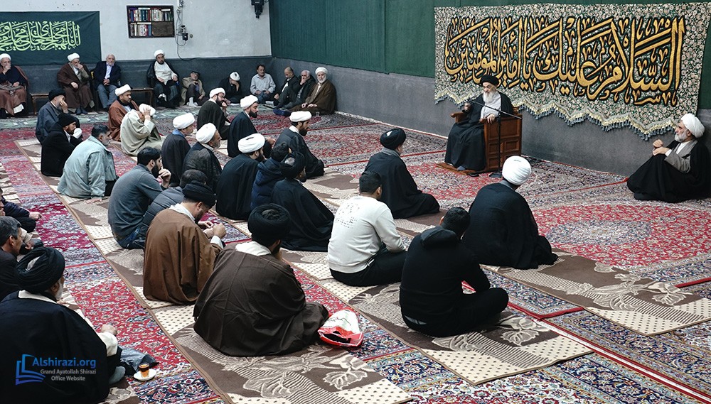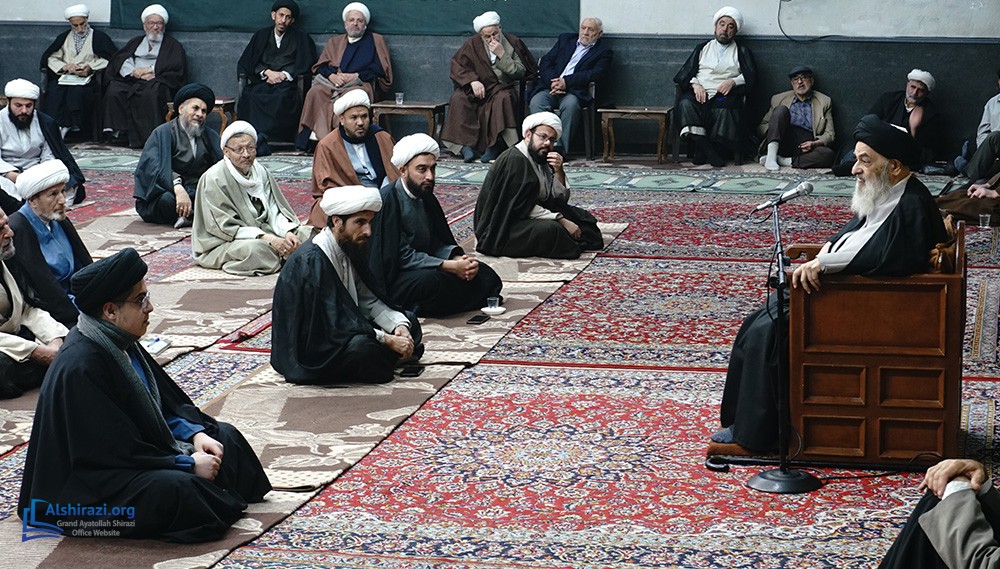 On Sunday, 14 Rajab 1447 AH (January 4, 2026), another scholarly session of the esteemed Religious Authority, Grand Ayatollah Sayyid Sadiq Husseini Shirazi, may Allah prolong his life, was held at his residence in the Holy City of Qom, Iran, with the participation of dozens of scholars, religious figures, and seminary students.
