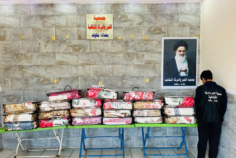 انجمن فرهنگی الخیر والبرکة، شعبه جکوک بغداد، همزمان با سالروز شهادت حضرت زینب کبری سلام الله علیها، اقدام به توزیع پتو در میان خانواده های نیازمند این منطقه کرد.