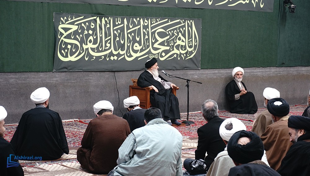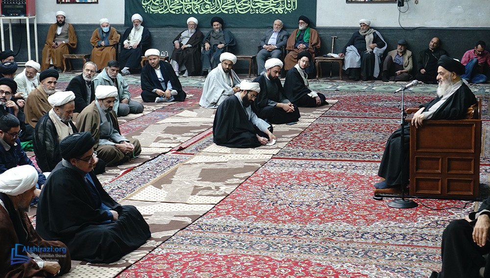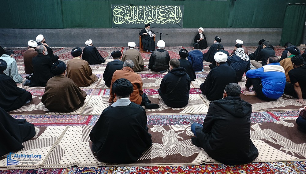On Wednesday, January 7, 2026 (17 Rajab 1447 A.H.), the esteemed Religious Authority, Grand Ayatollah Sayyid Sadiq Husseini Shirazi, may Allah prolong his life, held another scholarly session at his residence in the Holy City of Qom, Iran, with the participation of dozens of scholars, religious figures, and seminary students.